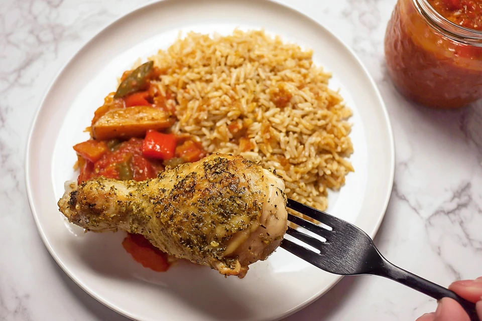 Air Fryer Chicken and Seasoned Rice