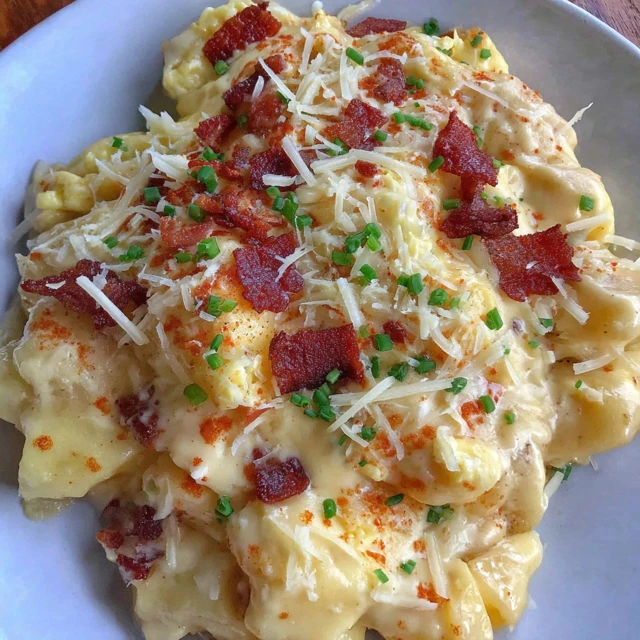 Make breakfast more exciting with this cheesy potato egg scramble that will have you jumping out of bed!