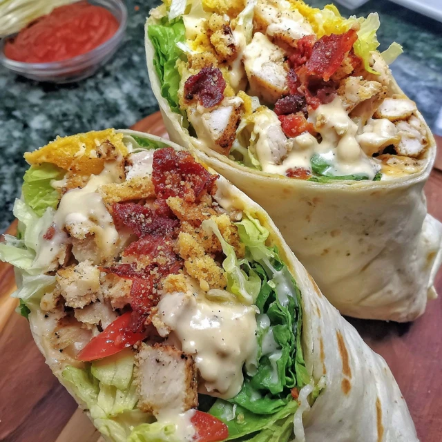 - Add bacon bits for extra crunchnSubstitute with spicy ranch dressingnUse spinach or whole grain tortillas