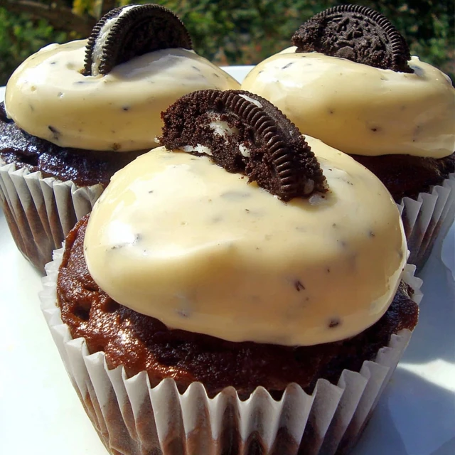 Frost cooled cupcakes and top with extra Oreo crumbs