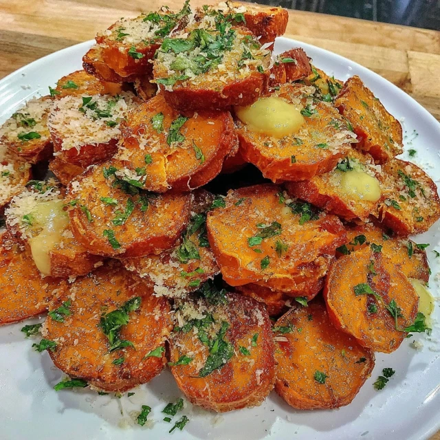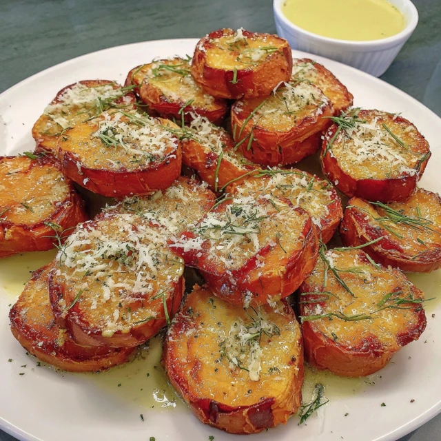 Crispy Baked Sweet Potato Bites with Parmesan Herb Butter