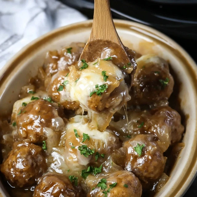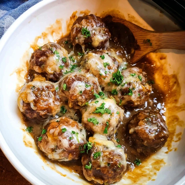 Crockpot French Onion Meatballs