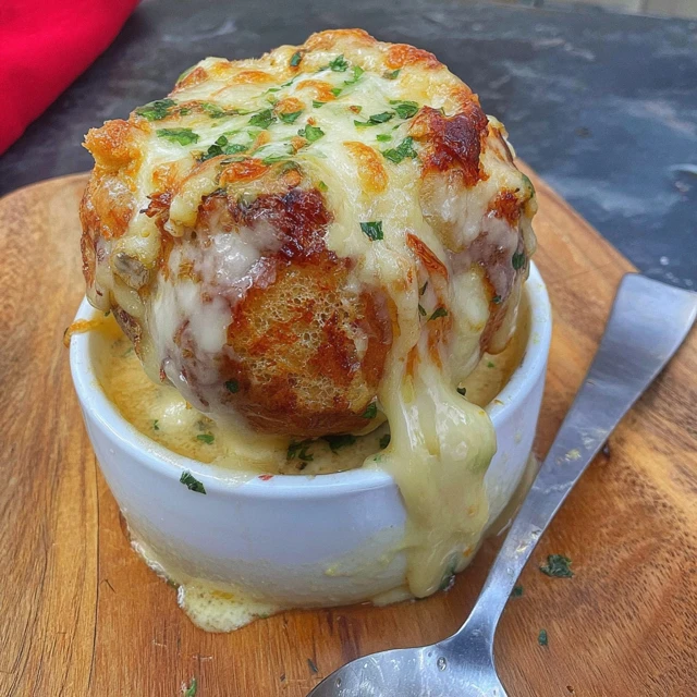 French Onion Soup Inspired Cheesy Onion Boil