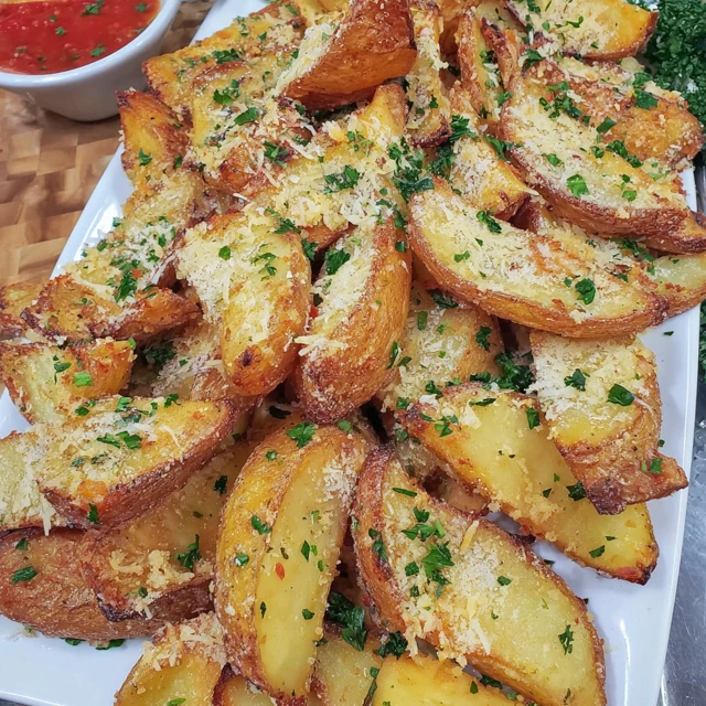 Sprinkle Parmesan cheese over wedges halfway through baking.n