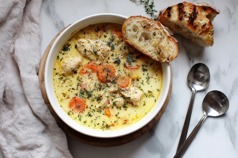 Add chicken breasts, chicken broth, bay leaves, thyme, and rosemary