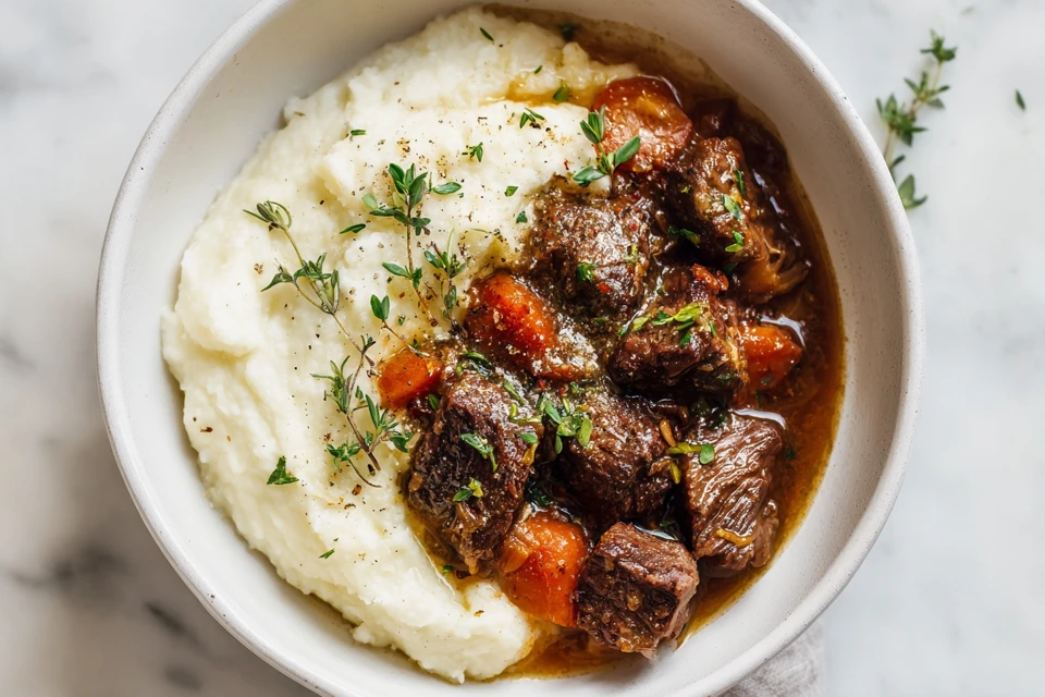 In the last 30 minutes, whisk flour with 1/4 cup of cooking liquid and stir back into stew to thicken