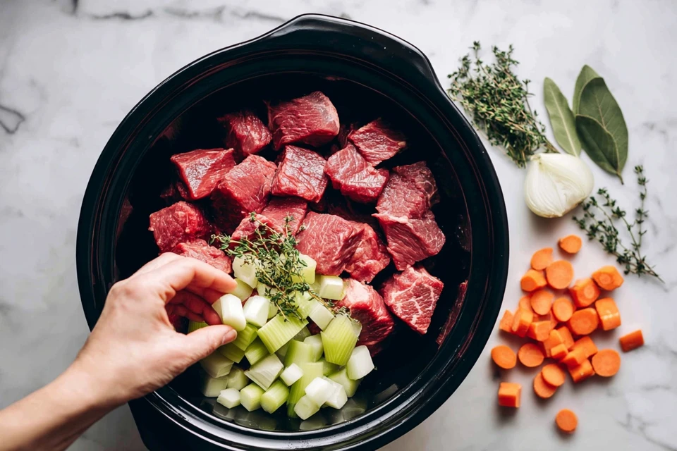 - Not browning the meat before slow cooking Opening the lid too frequently during cooking Cutting vegetables in inconsistent sizes Using lean cuts of beef instead of marbled chuck Adding too much liquid which dilutes flavors