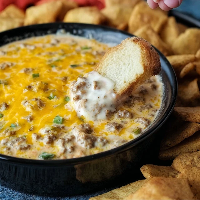 Use low-fat sausage and cheese for lighter versionnGrease slow cooker for easy cleanupnLet dip sit 10 minutes before servingnDouble batch for larger gatherings