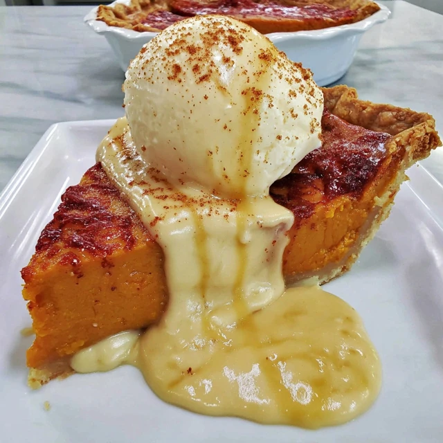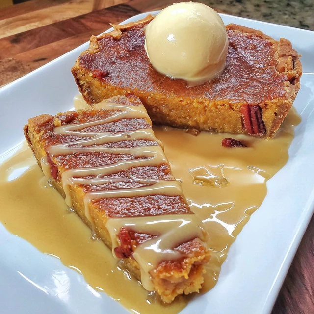 - Top with whipped creamnPair with vanilla ice creamnGarnish with pecans on top